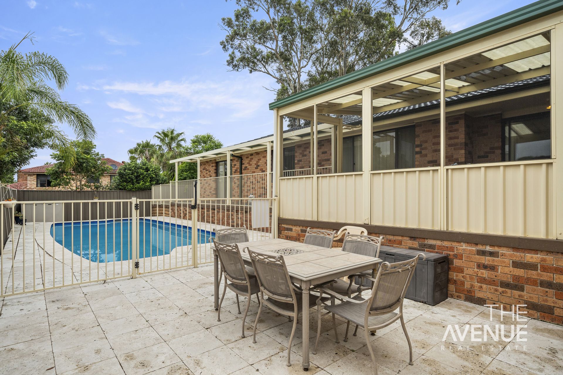 • Covered alfresco overlooks the sparkling saltwater inground pool