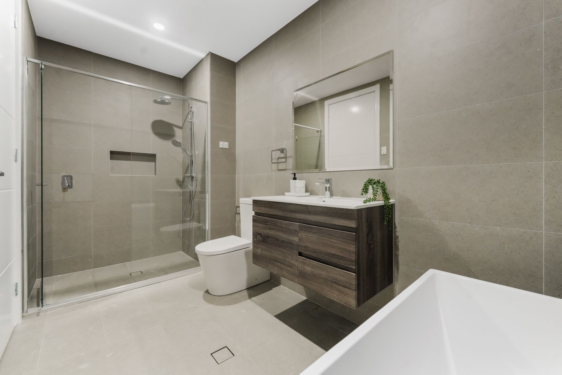 - Main bathroom and ensuite with semi-frameless shower screens and high tiling to shower areas